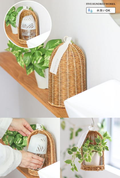 市販の芳香剤がすっぽり収まる通気性の良いカゴ編み構造の