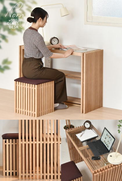 デスク 和モダンスタイルにも似合う縦格子デザイン