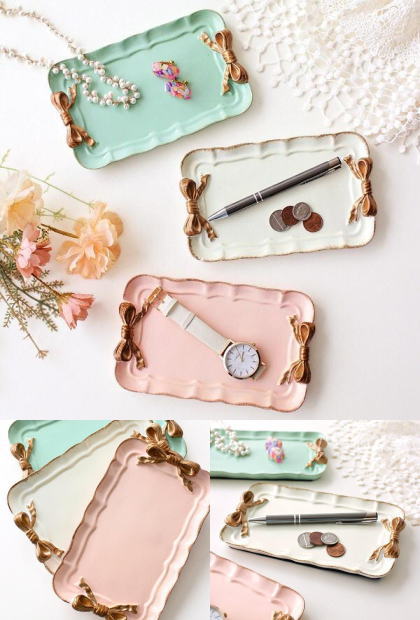 ミニトレイ パステルカラーが素敵なリボントレイ