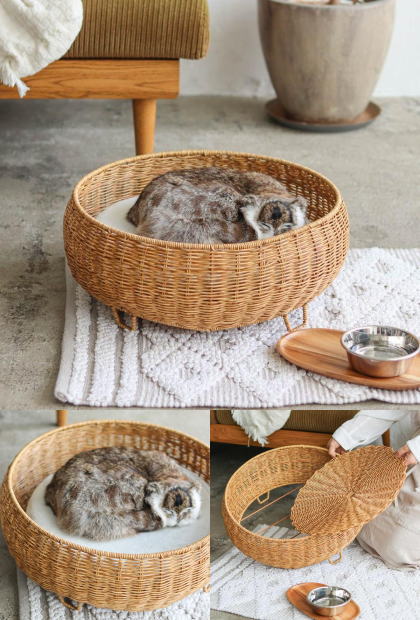 猫ベッド 編み込みが可愛い水洗いできるネコベッド